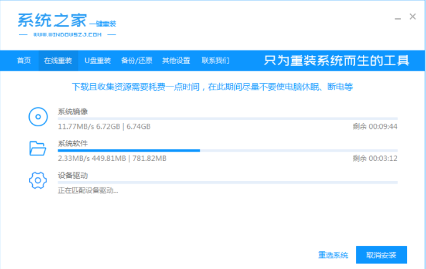 1、下载系统之家重装软件并打开。再选择在线重装系统。