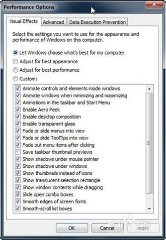 Aero特效也是影响系统性能的一个部分,所以不妨将其关闭。进入控制面板选择“性能和工具”部分,再选择“调整视觉效果”,你会发现一长串的选项,关闭Aero项目即可。但如果你选择了关闭所有特效,你会发现仿佛回到了10年前。