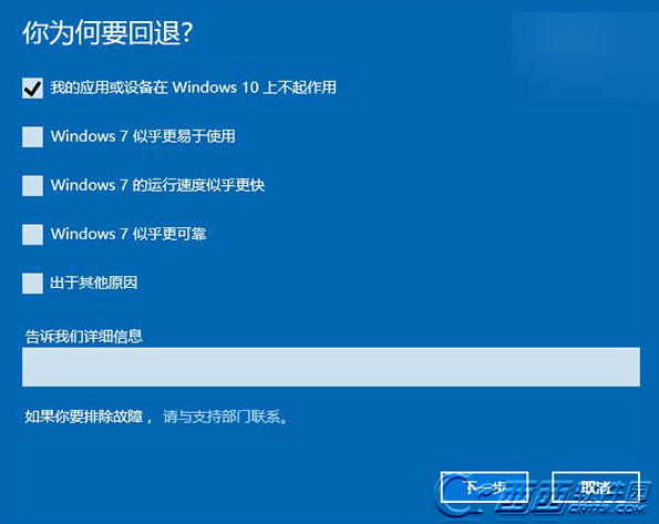 2、选择“回退”理由(可多选),然后点击“下一步”继续(以下每一步随时都可以取消“回退”操作)。