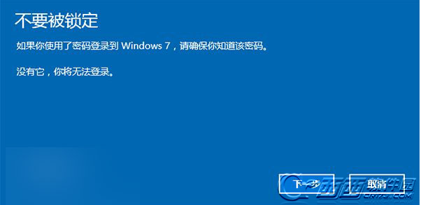 4、对于已经设定登录密码的用户,回退后密码将被恢复,因此你需要知道该密码才能正常登录。确认该消息不会影响到你的使用后,点击“下一步”继续。