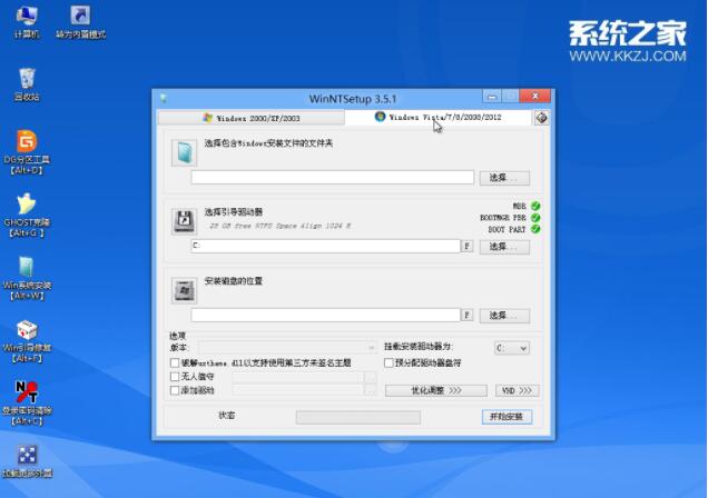 5、 打开可以看到两个界面,左边的那个是安装163987 2000/xp/2003系统用的。