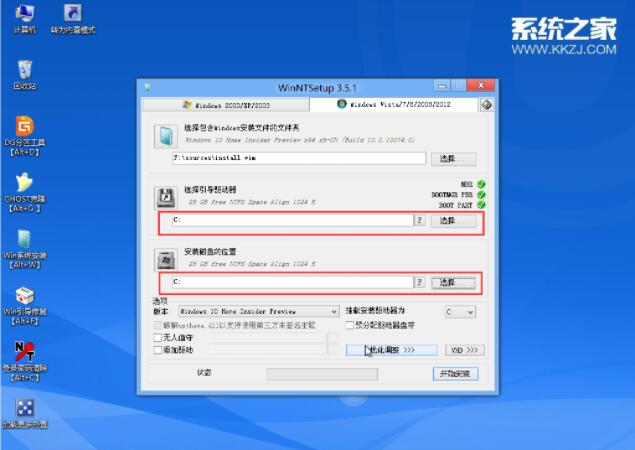 7、 选择好后,选择引导驱动器和安装磁盘的位置,引导驱动器一般会自动选择好的,磁盘安装位置就是系统盘,一般是C盘,选择C盘就ok了。