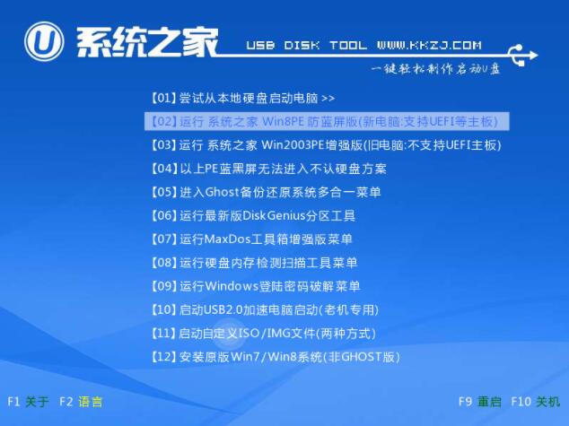 2、 开机时一直按U盘启动快捷键,出来引导选项后选择U盘启动就可以进入系统之家pe选择界面。