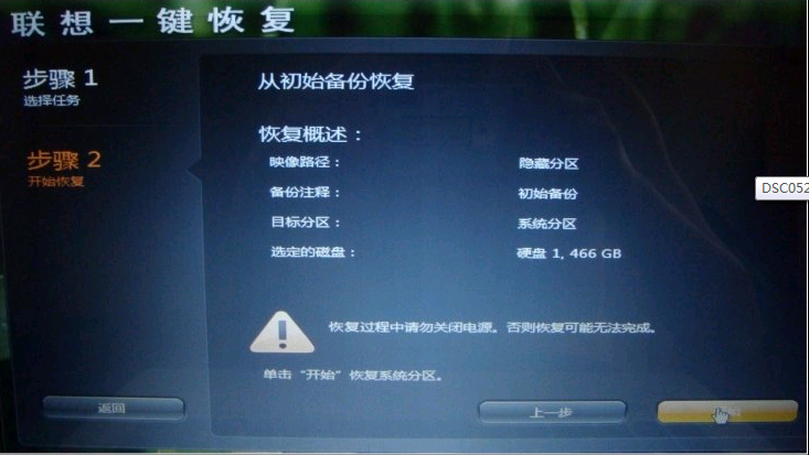 6、进入一键恢复界面,按照提示它可以从隐藏分区恢复出厂状态,或者使用用户自己的备份恢复;