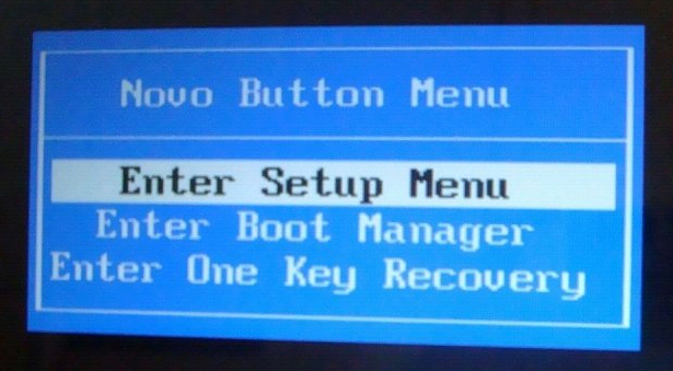 2、在关机的状态下,按下“一键恢复”健,笔记本会自动开机并进入该选择菜单;1、进入BIOS ;2、选择启动设备顺序;3、进入一键还原功能 ;