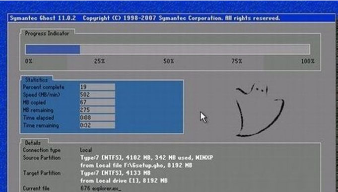 6、电脑重启后,自动进入到电脑GHO模式进行系统恢复操作。
