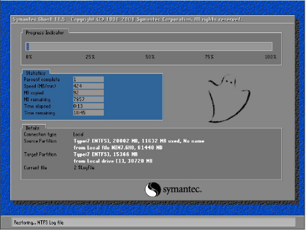2、电脑自动拷贝系统过程,拷贝系统后完成自动重启。
