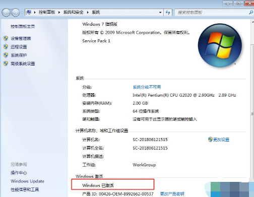 8.打开后可以看到Windows激活那一栏显示已激活。