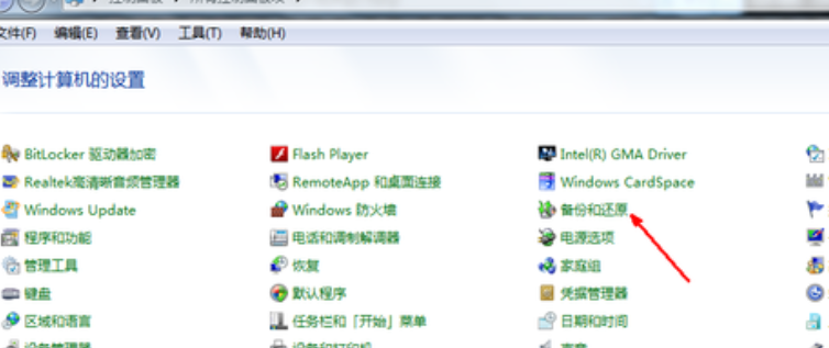 1、进入控制面板,打开备份和还原功能。