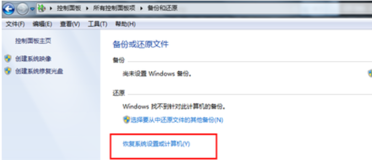 2、点击备份与还原,接着点击恢复系统设置和计算机。
