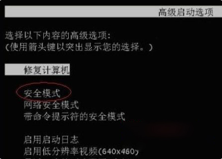 3、之后在电脑的“高级启动选项”画面中,选择“安全模式”选项。