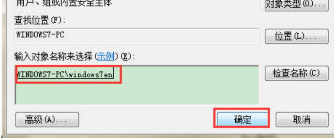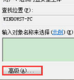5. 在弹出的“选择用户或组”窗口中win7个文件夹设置密码,选择“高级”;