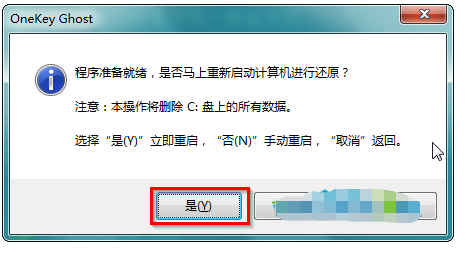 6、 然后在出现的提示界面上,选择“是”,那么就会立即开始计算机重启进行还原。如下图所示: