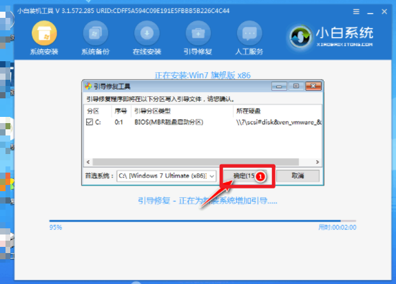 6、我们根据提示进行操作,在修复引导中默认情况下选择C盘修复,点击“确定”。