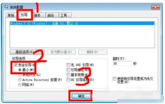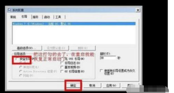 3、以上设置完后之后,重启系统就会自动进去安全模式了,如果要退出安全模式的话,按如上步骤,把安全引导的勾给取消就OK即可。