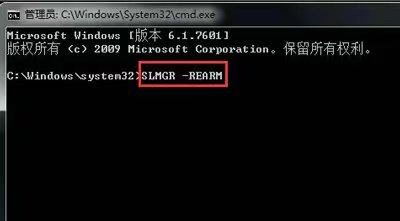 4、这样就进入了这样的界面,在该界面》后面输入SLMGR -REARM,大家注意下有个空格键;