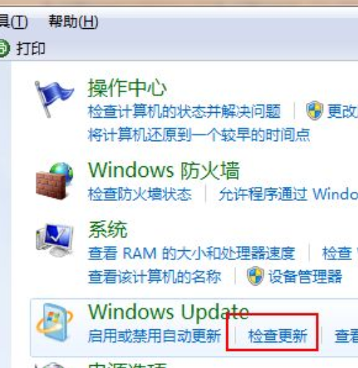 2、在Windows update下点击“检查更新”。