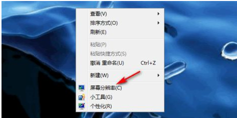 1、右击电脑桌面上的空白处,点击屏幕分辨率。