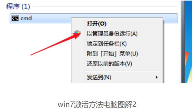 2、找到cmd后,右键选择“以管理员身份运行”。