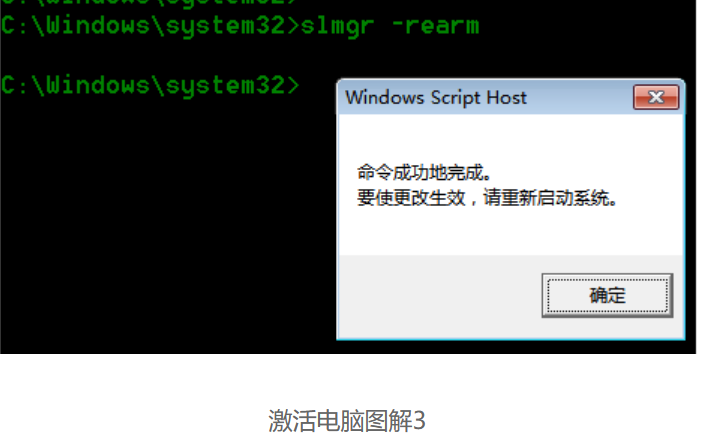 3、在cmd中执行如下命令:slmgr -rearm即可再次激活。激活完成后重启系统会看到激活时间又延长了。