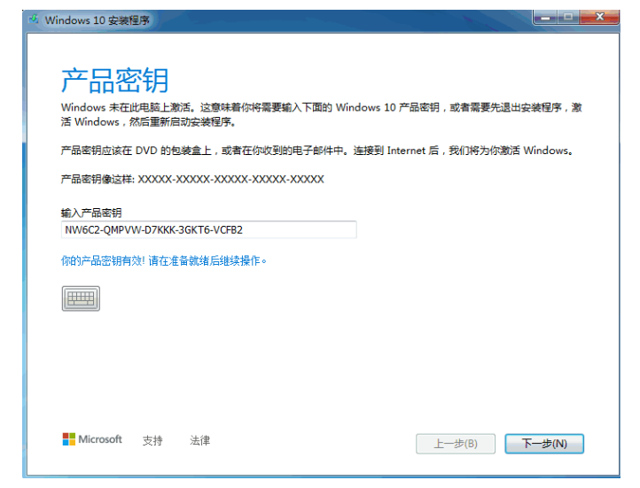 6、输入产品密钥激活windows10系统即可。