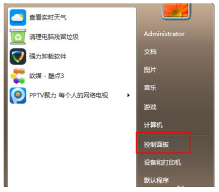 1、点击桌面左下角的开始菜单,打开控制面板。