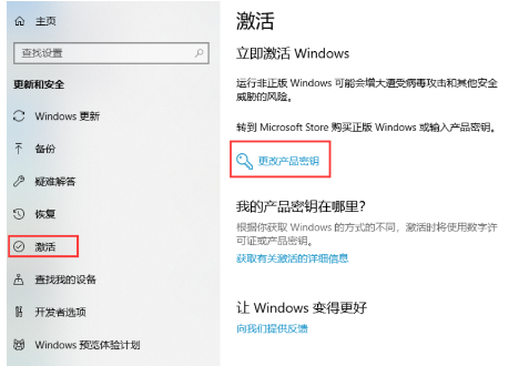 3、然后继续点击打开“更改产品密钥”。