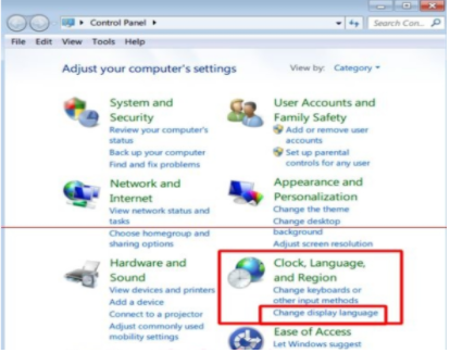 2、点击进入“Control Panel”(即中文里的“控制面板”),点击【Clock, Language, and Region】下面的【Chage display language】,前面有个地球以及时钟标记,language = 语言,Change display language = 改变显示语言。