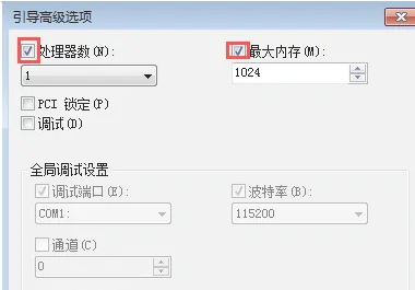 2.点击“引导--高级选项”,在“处理器”和“最大内存”上根据自己的电脑配置进行设置。