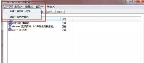 2、进入任务管理器输入命令即可打开win7任务栏。