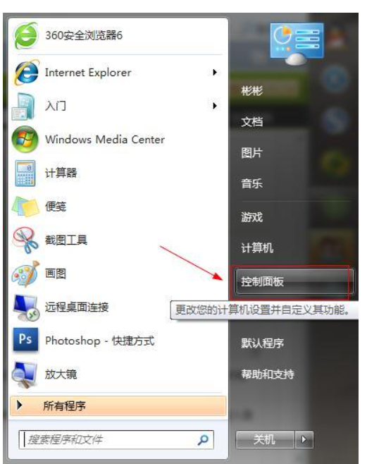 1.点击打开“控制面板”程序。
