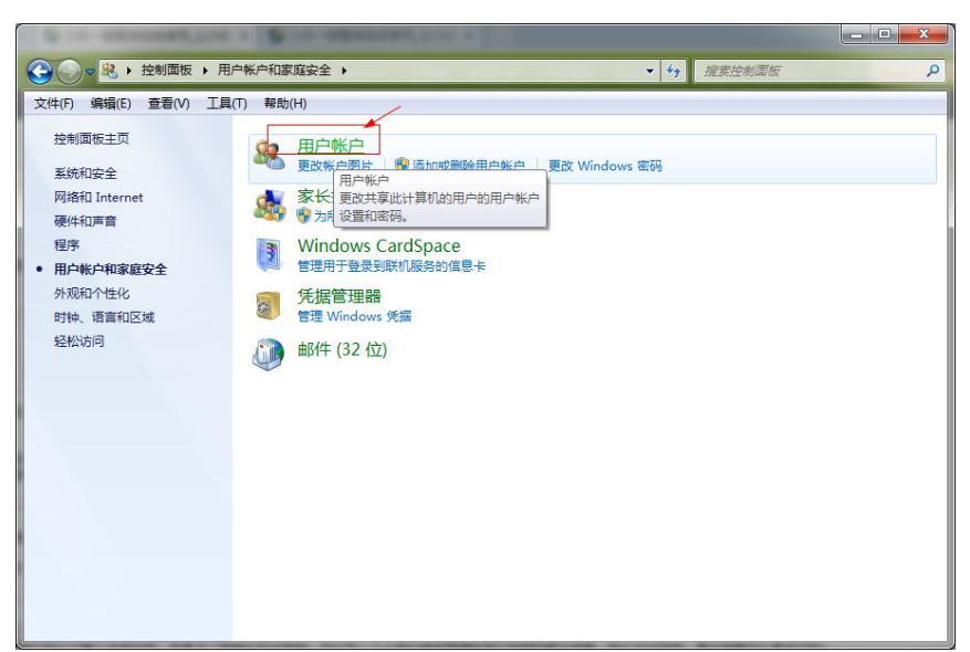 2.点击并打开“用户账户”。