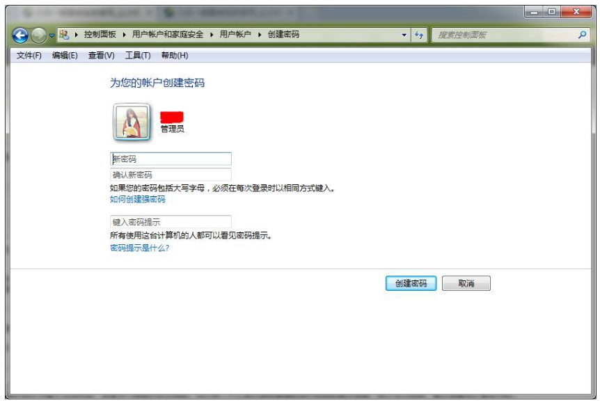 4.之后会打开“创建密码”界面,界面中有三个输入框供给我们输入,最上面两个是要设置的密码和确认密码,两个密码徐要保持一样。