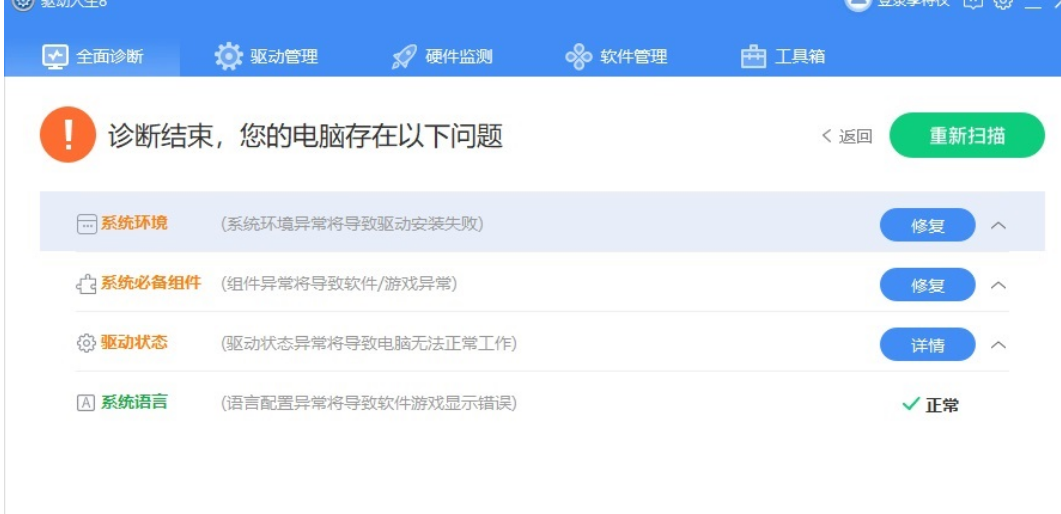 3、最后扫描到所有可以安装的驱动,点击“修复”即可。