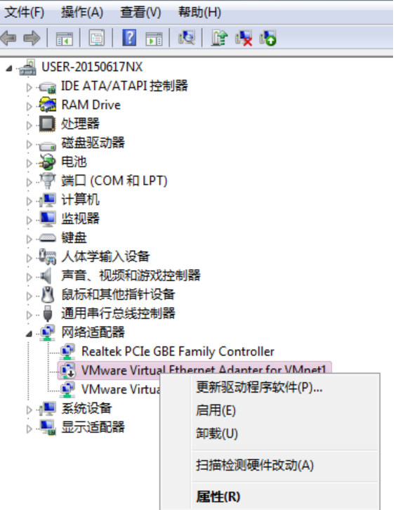 2、打开后,右击要手动安装驱动的设备,点击“更新驱动程序”。