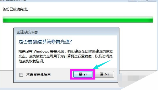 8、系统备份完以后,会提示我们是否创建系统修复光盘,如果有刻录机当然可以刻录一张系统修复光盘。如果没有空光盘和刻录机选择“否”,C盘已经做了备份。