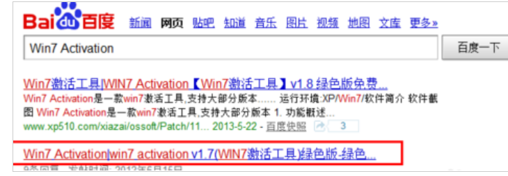 1、上网搜索并下载“Win7 Activation”。