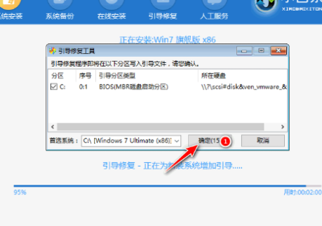 5.硬盘分区,修复引导过程中,勾选C盘作为我们的系统盘。