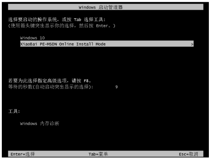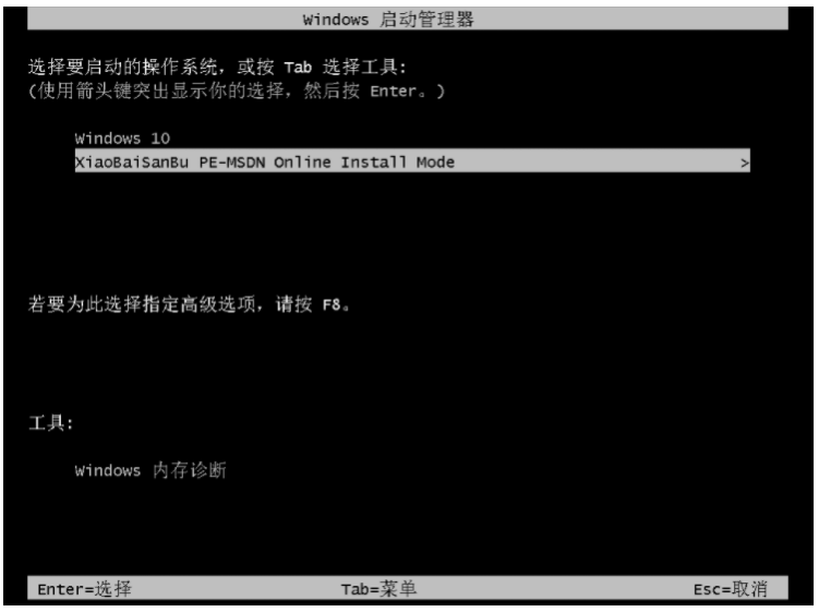 4、当进入启动项选择界面,选择小白PE系统按回车键进入。