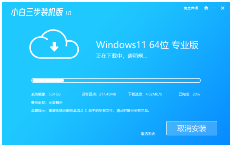 1、打开小白三步装机版工具,选择win11系统进行安装;