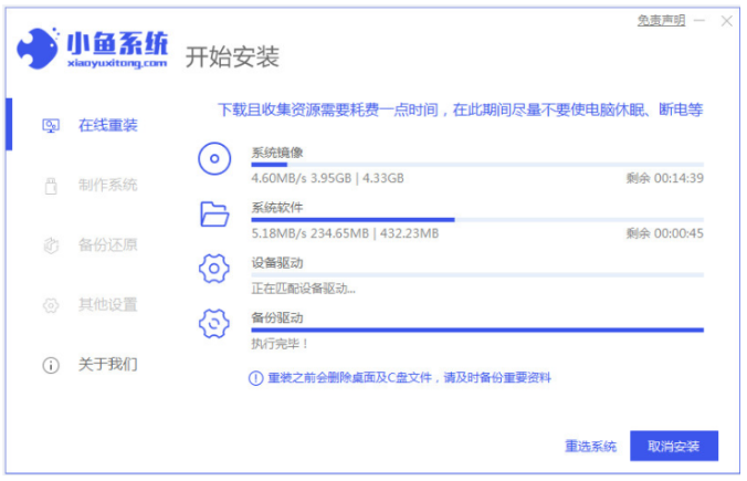 6、小鱼装机软件自动安装win7系统,耐心等待。