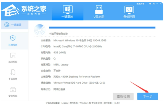 2、进入工具之后,工具将会自动检测当前电脑系统的相关信息,点击下一步。