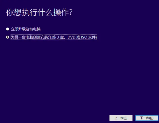 3、根据我们自己的情况选择,这里我们选择“立即升级这台电脑”作为例子,工具会根据你当前使用的系统自动下载合适的版本,之后执行升级操作。如果是选择“为另一台电脑创建安装介质”后,用户可以选择语言、版本和体系结构,该工具提供了专业版、专业版N、家庭版、家庭版N四个版本下载。
