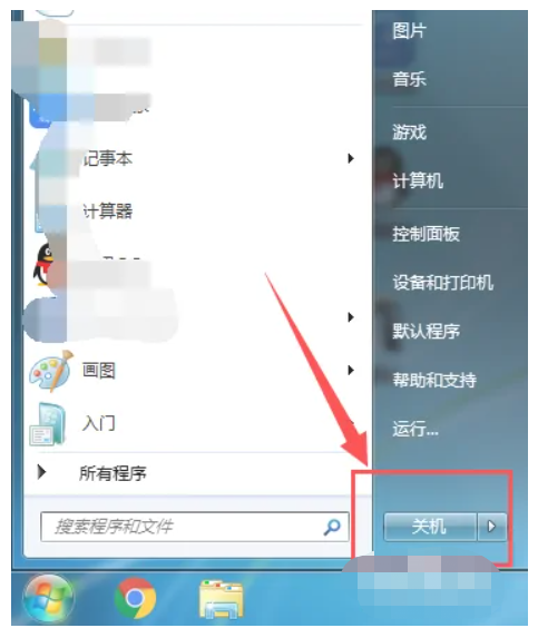 方法一:在win7电脑开始菜单来关机
