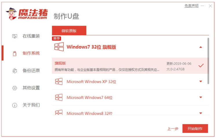 1、打开魔法猪装机大师工具制作win7 u盘启动盘。
