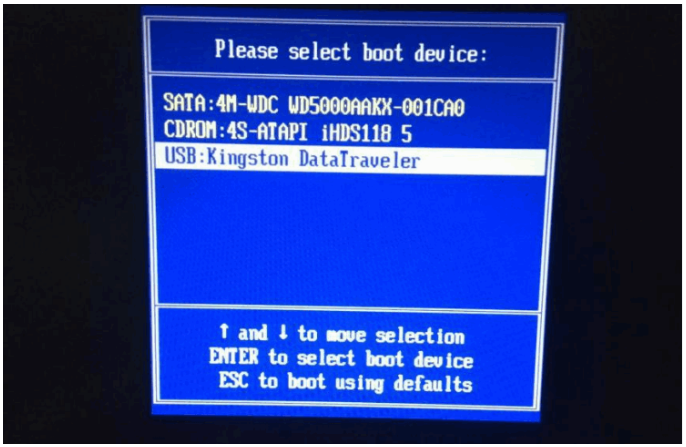 4、插入启动盘进电脑接口中,开机不断按启动热键进启动界面,这里就选择u盘启动项回车确定进入到pe选择界面,选择第一项pe系统按回车进入。