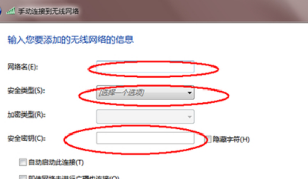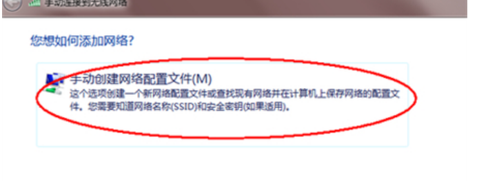 3、点击添加,弹出手动连接到无线网络窗口,选择第一个手动创建。