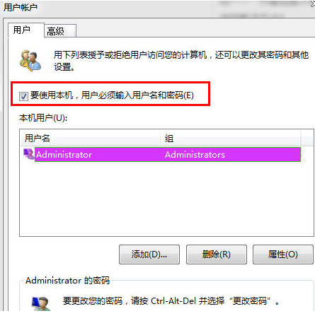 PS:如要设置为自动登录,选择一个用户,取消勾选“要使用本机,用户必须输入用户名和密码”,确定后弹出一个给该用户输入密码的界面,一定要输入一个密码,不然又会出现上述故障。