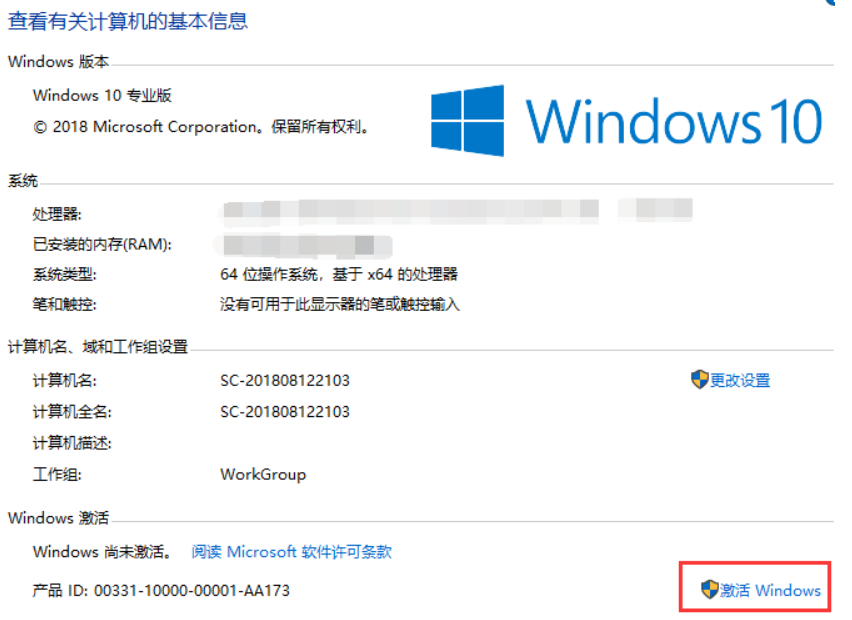2、在打开的界面当中,鼠标点击“激活Windows”。