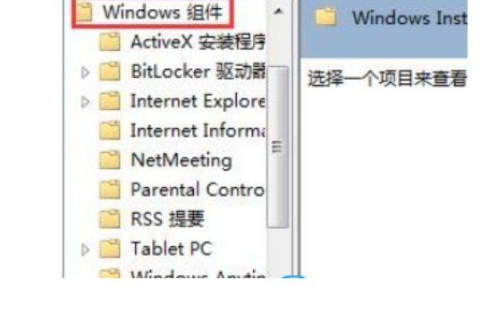 4、然后继续寻找Windows组件,并在该选项下寻找Windows Installer子项点击显示。